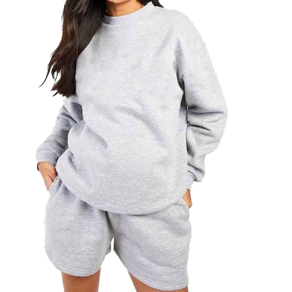 ชุดออกกำลังกายสบายๆ แบบ 2 ชิ้น เสื้อฮู้ดและกางเกงขาสั้นผ้าฟลีซเนื้อผ้าฝ้าย 100% แบบ unisex สีพื้น สินค้ามาใหม่ แฟชั่นลำลอง