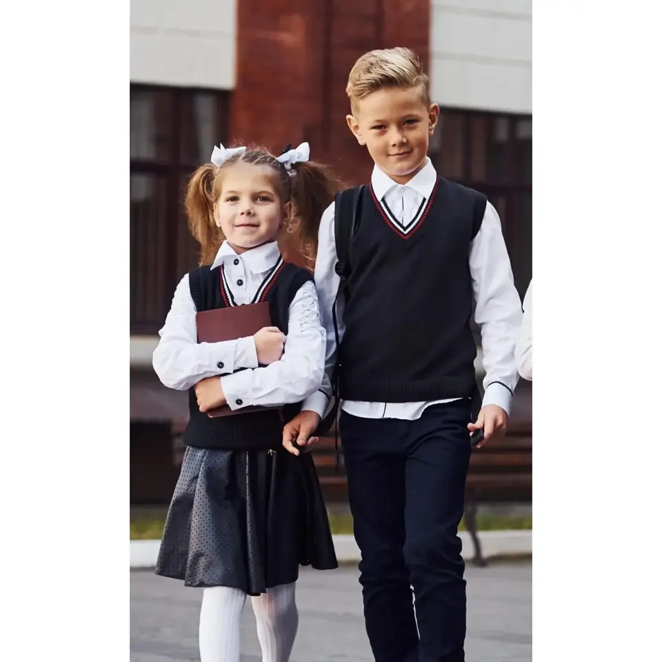 Comfortable and Fun Cotton Oxford Fabric School Clothing for Kids Girls' Formal School Shirt and Dress Top Uniform