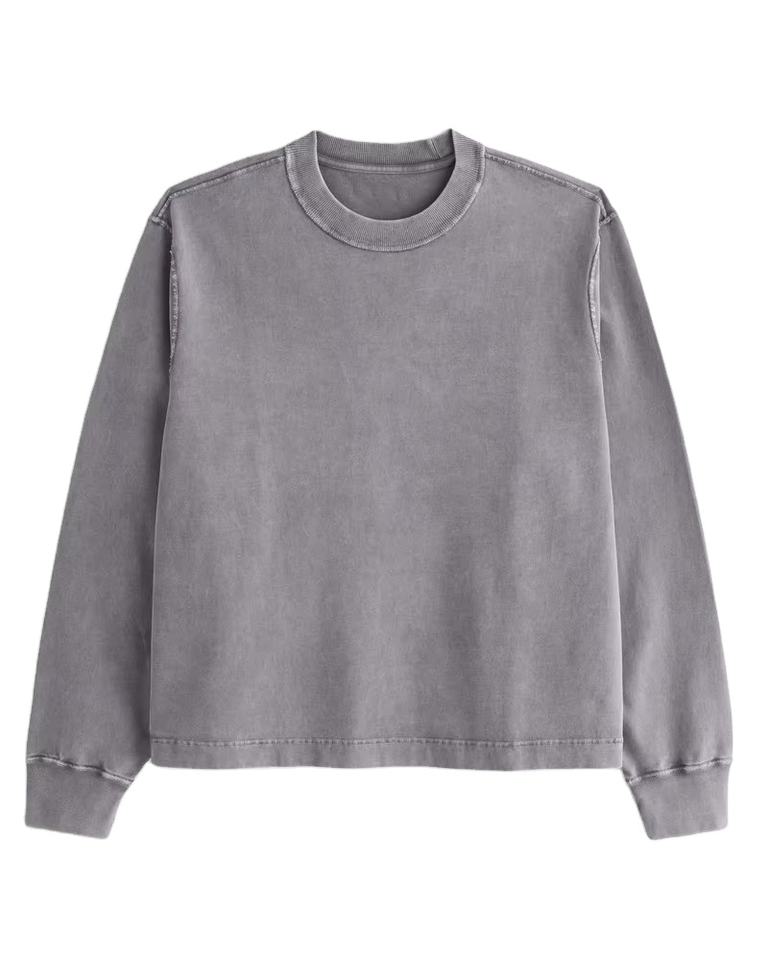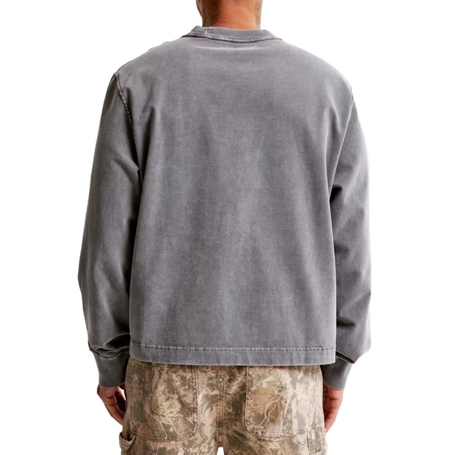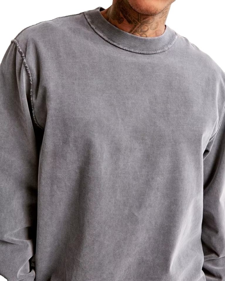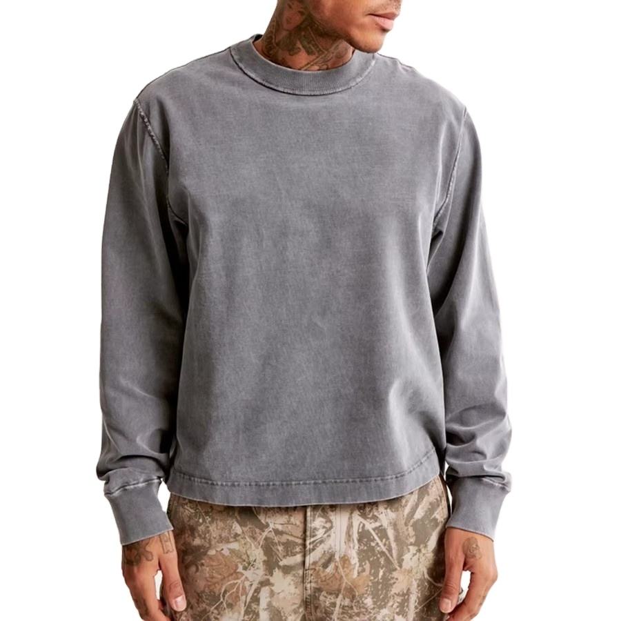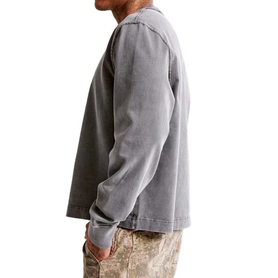 เสื้อยืดคอตตอน 100% คุณภาพสูง สวมใส่สบายสำหรับผู้ชาย ทรงหลวม แขนยาว ล้างสีแบบแอซิดวอช ราคาถูก เสื้อยืดแขนยาวล้างสีแบบแอซิดวอช