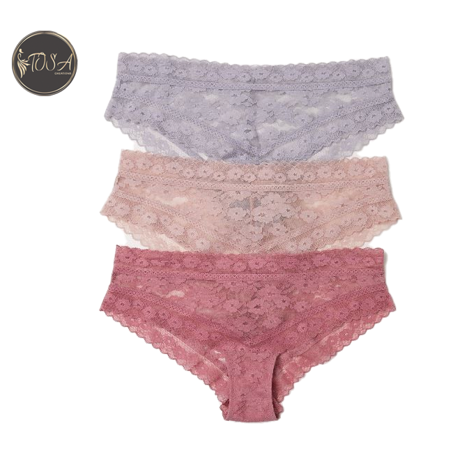 กางเกงในทรงคลาสสิกเอวกลาง แต่งลูกไม้ พร้อมแผ่นรองกันเปื้อน ผ้าฝ้ายผสม สไตล์เรียบง่าย สีพื้นหลากหลายขนาด XS-XL