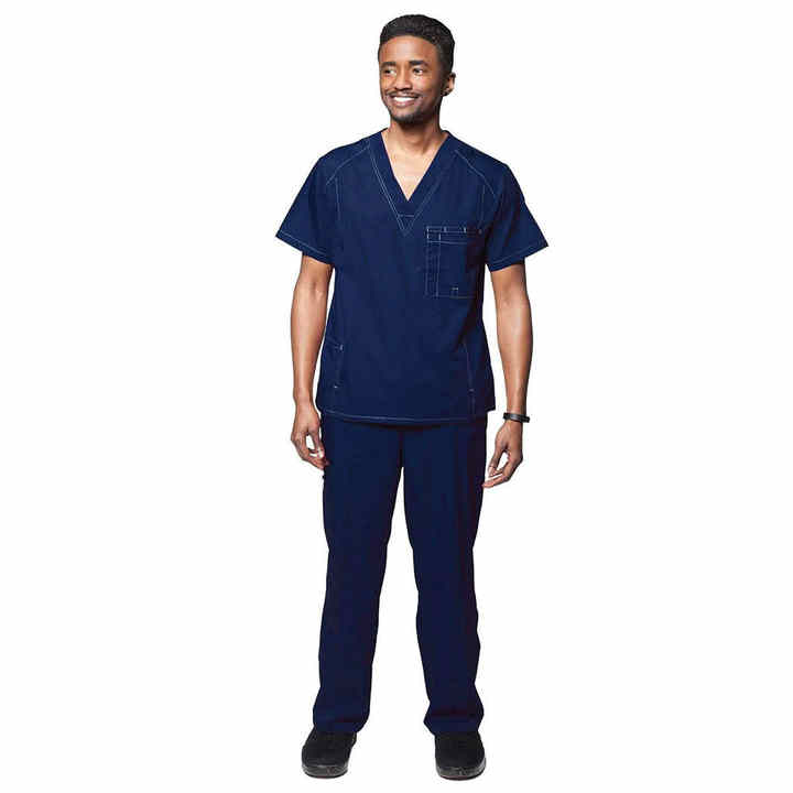 ชุดสครับพยาบาลสวมใส่สบายชุดเครื่องแบบทางการแพทย์ผ้ายืดสัมผัสนุ่มระบายอากาศได้ดีสองชิ้น