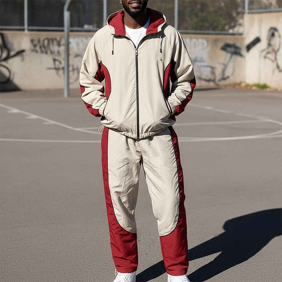 ชุดวอร์มผู้ชายผ้าฝ้ายหนานุ่มสำหรับฤดูหนาว สีสันตัดกัน ขนาดสวมใส่สบาย กันน้ำ กันลม