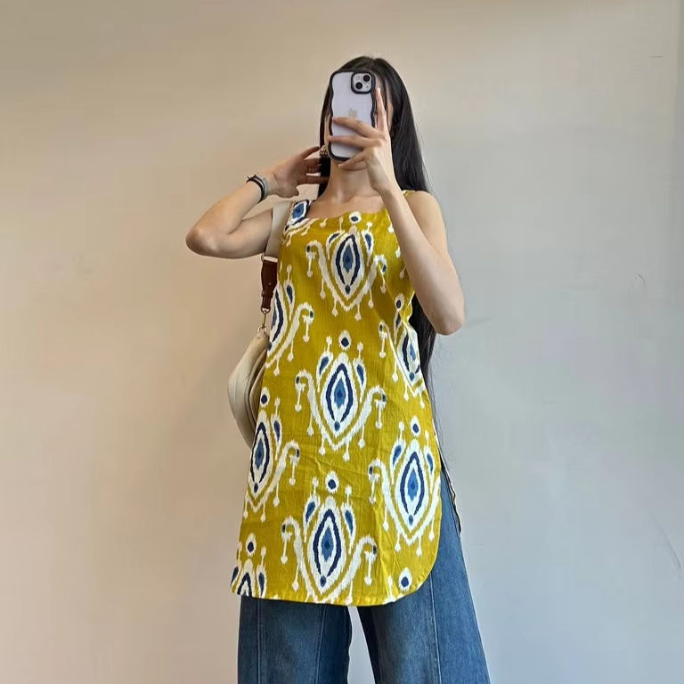 เสื้อยืดผู้หญิงแขนกุดผ้าฝ้ายทอแท้คุณภาพสูง พิมพ์ลายด้วยมือ สวมใส่สบาย เหมาะสำหรับงานปาร์ตี้ มีสไตล์และซักได้