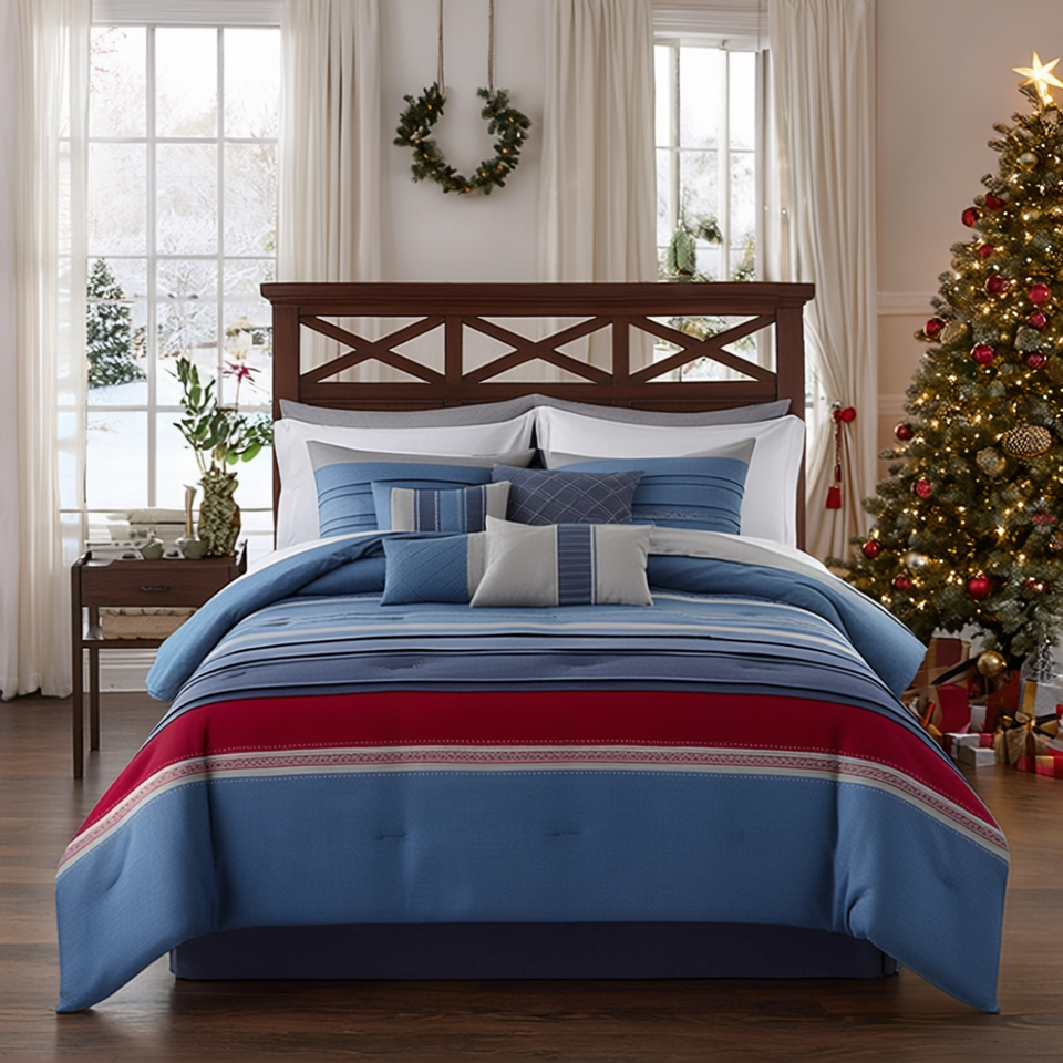 Comforter Set 7 Piece Woven Jacquard Super King King Size Cotton Embroidered Christmas Themed Bedding Home Use