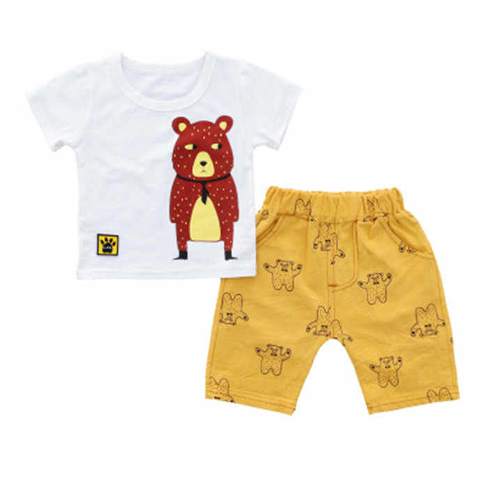 เสื้อผ้าเด็ก สีสันสดใส ลายการ์ตูน เสื้อยืดสำหรับเด็กผู้ชาย และกางเกง