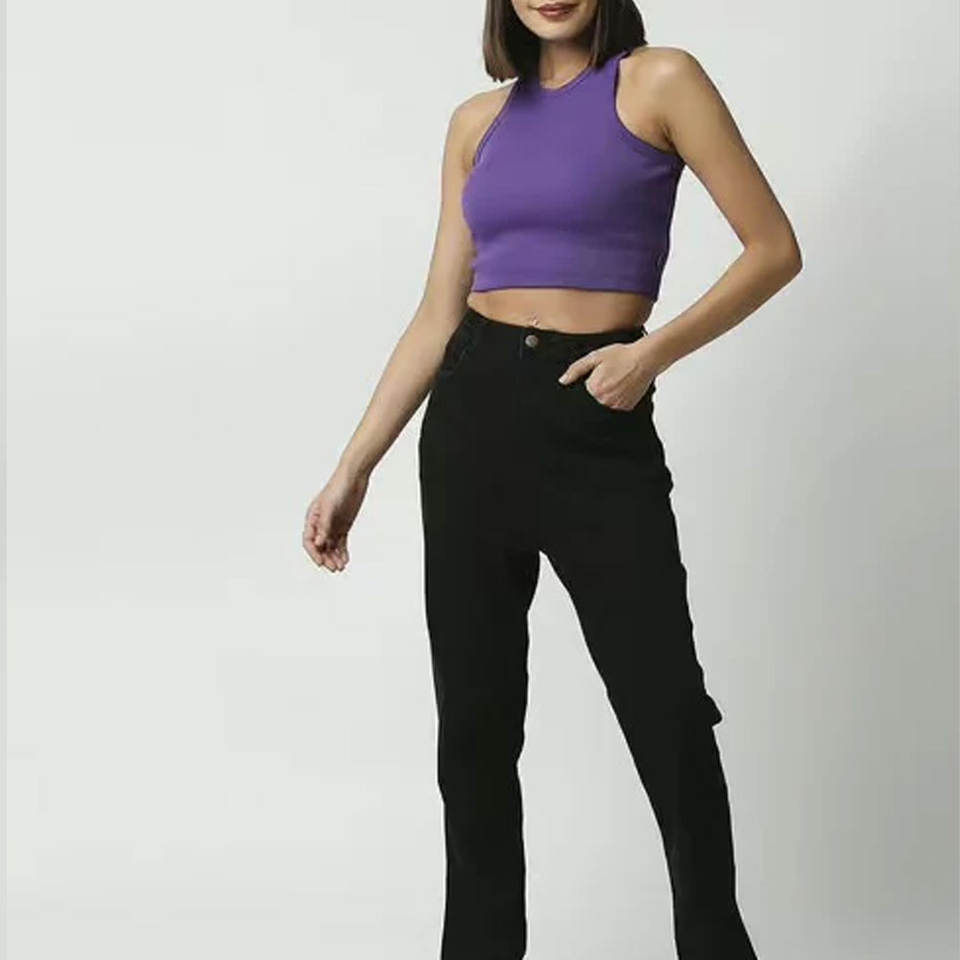 เสื้อกล้ามครอปแสนสบายดีไซน์เรียบง่ายสีพื้นแบบไม่มีแขน เหมาะสำหรับสภาพอากาศอบอุ่น