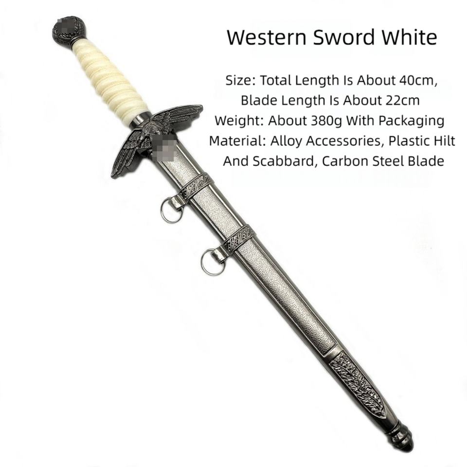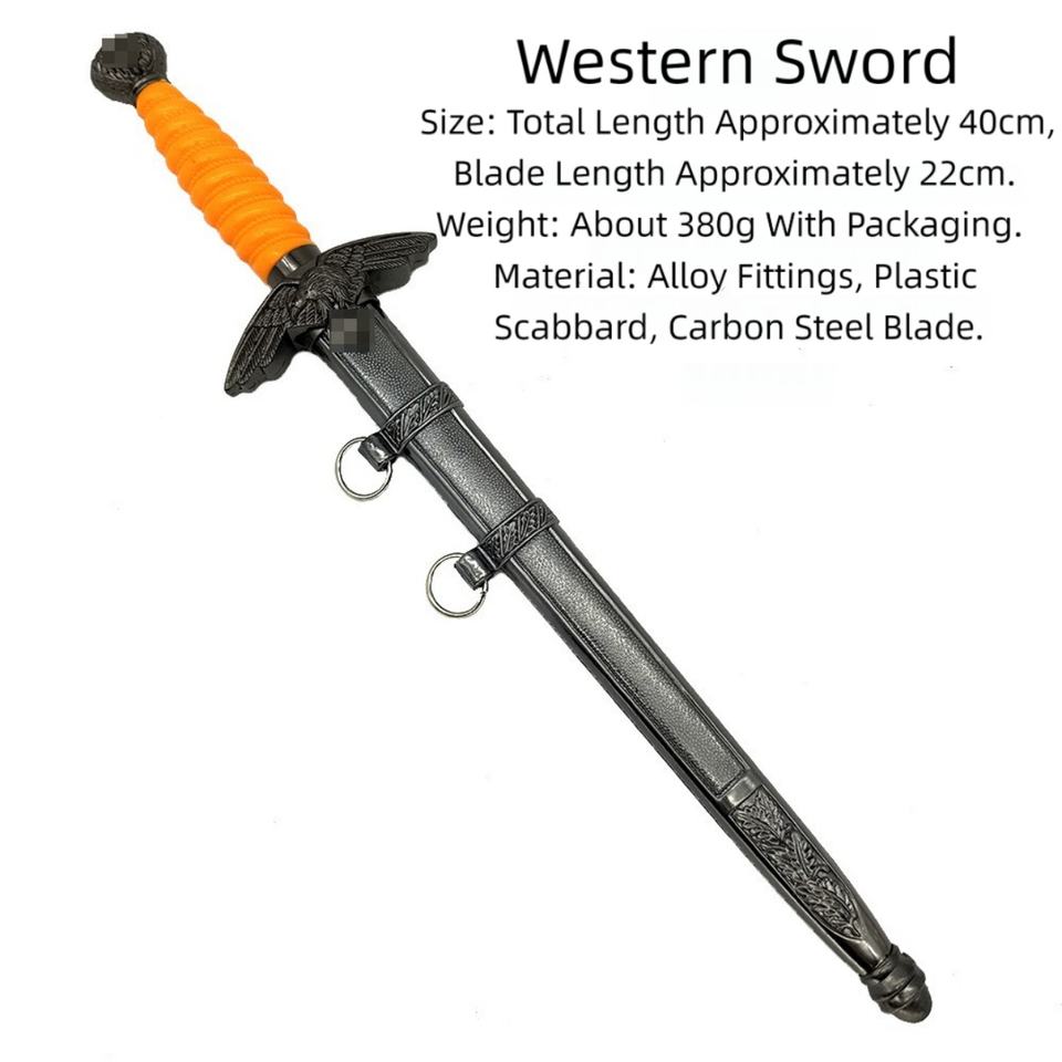 ดาบคอมมานด์ซอร์ด สไตล์ยุโรป ดาบอัศวินตะวันตก ทำจากเหล็กกล้าไร้สนิม สำหรับมือขวา ใบดาบยาว 220 มม. ด้ามพลาสติก ล้างในเครื่องล้างจานได้ เหมาะสำหรับเล่นเกมและดูหนัง