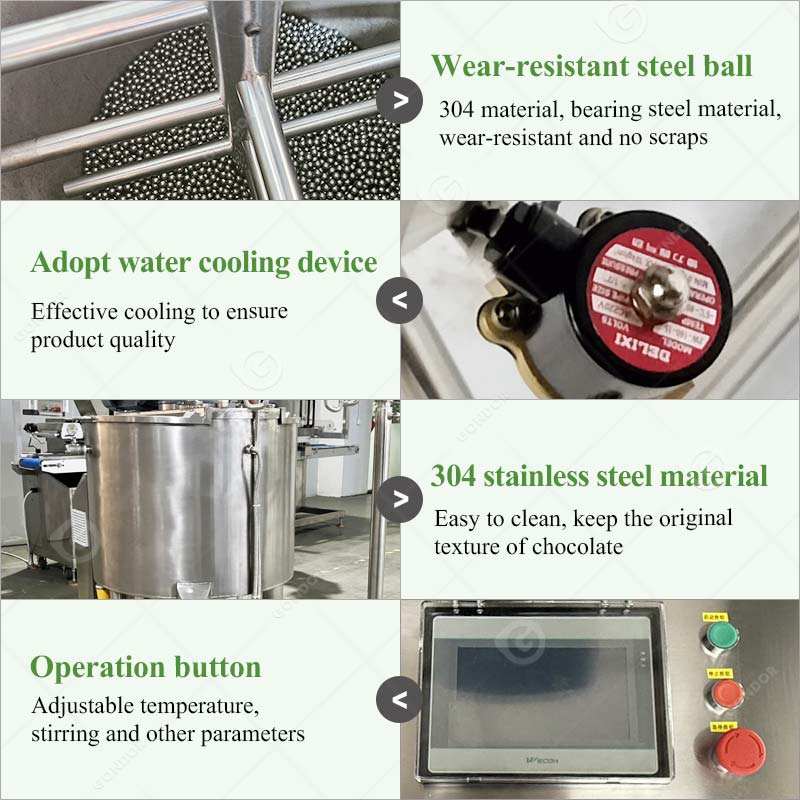 เครื่องบดแบบตั้งเชิงพาณิชย์ 20 กก. 100 ลิตร รุ่นใหม่ สำหรับบดช็อกโกแลตบอลขนาดใหญ่ ทำจากสแตนเลส 304 พร้อมระบบระบายความร้อนด้วยน้ำภายนอก