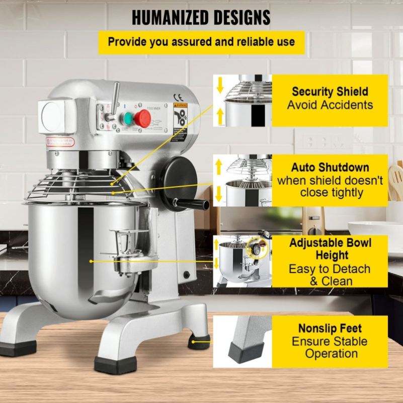 เครื่องผสมอาหาร10Qt 450W 3ความเร็วปรับ110/178/390รอบต่อนาทีใช้งานหนัก110V ชามสแตนเลสแป้งตะขอไฟฟ้า