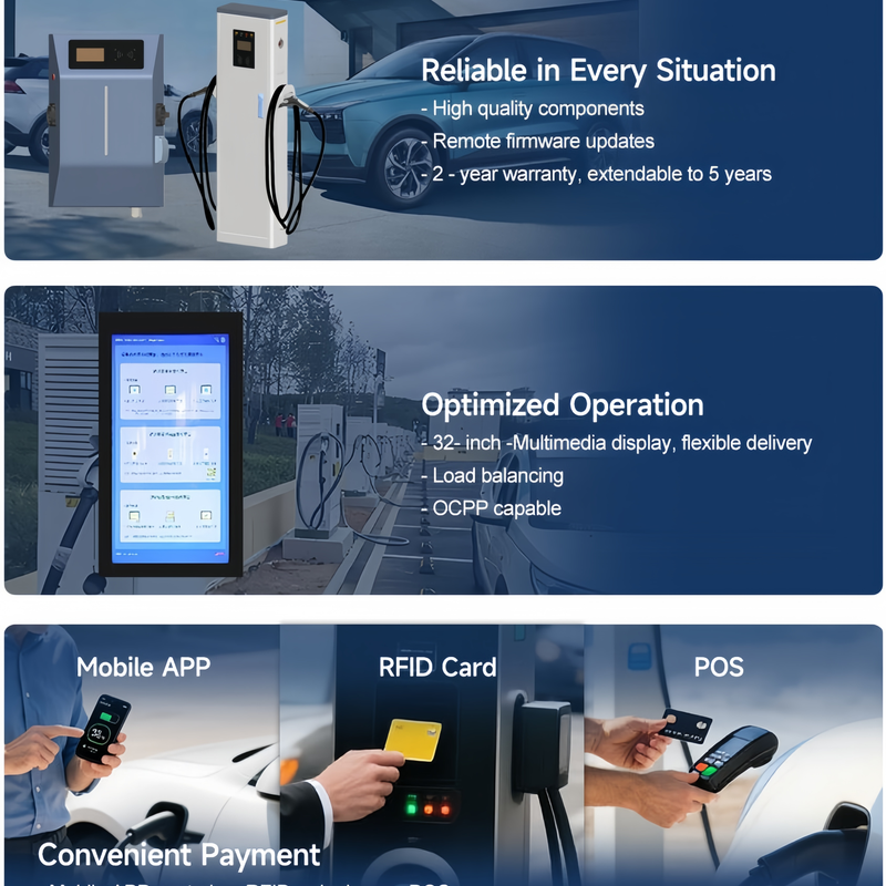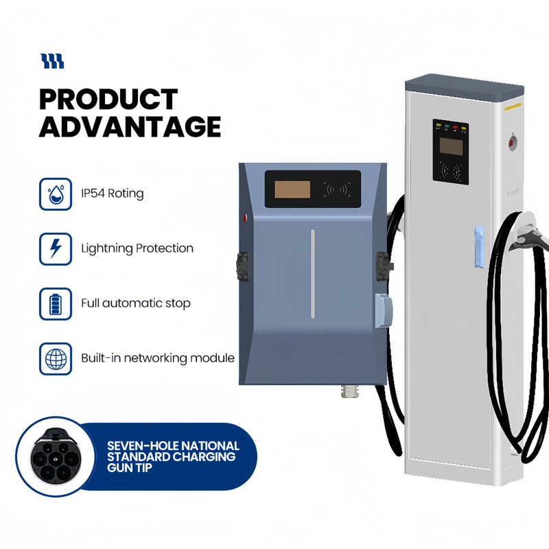สถานีชาร์จรถยนต์ไฟฟ้าแบบติดตั้งบนพื้น 22kW/44kW แบบสองหัวชาร์จ รองรับ OCPP ชาร์จเร็ว AC แบบ Type 2 240V 380V สำหรับรถยนต์ไฟฟ้า