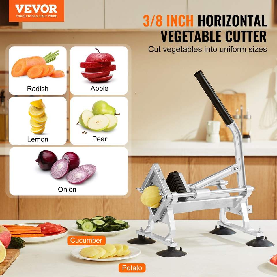 เครื่องหั่นผักด้วยมือทำจากอลูมิเนียมอัลลอยด์สแตนเลสขนาด3/8นิ้วสำหรับหั่นหัวไชเท้าผักผลไม้