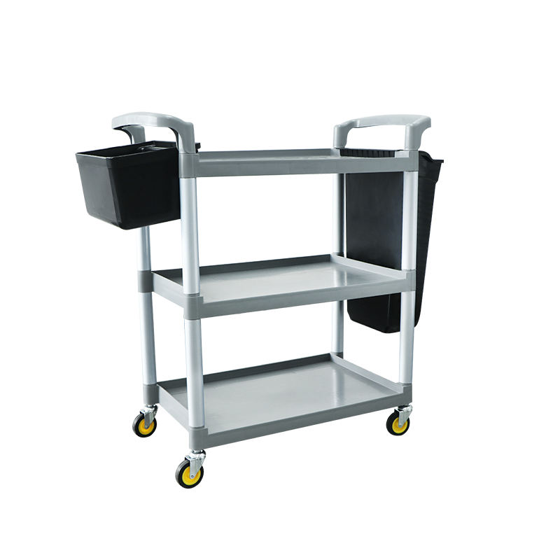 รถเข็น3ชั้นสำหรับร้านอาหารและโรงแรมรถเข็นสำหรับการเก็บอาหารและการจัดการของเสียพร้อมถัง