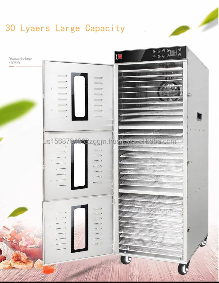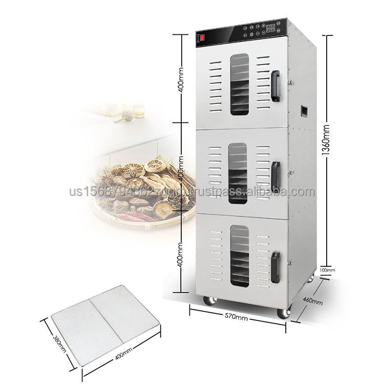 เครื่องอบแห้งผลไม้ ผัก เนื้อ ปลา แบบ PLC ควบคุม 30 ชั้น กำลังไฟ 1000 วัตต์ สำหรับใช้งานเชิงพาณิชย์ รับประกัน 1 ปี ขนาด 570x455x1360 มม.
