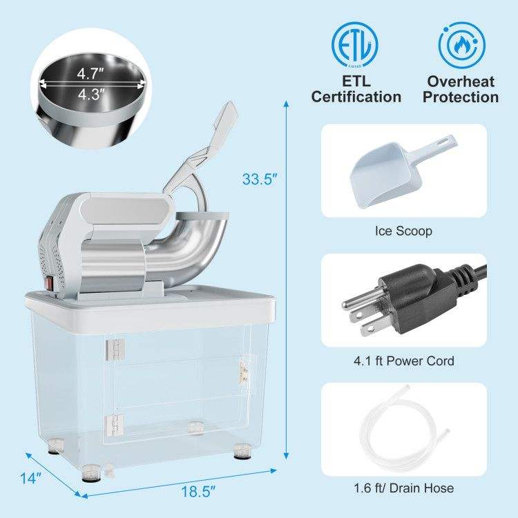 Commercial 300W Ice Crusher with Dual Blades and Safety Switch for Shaving & Crushing Ice