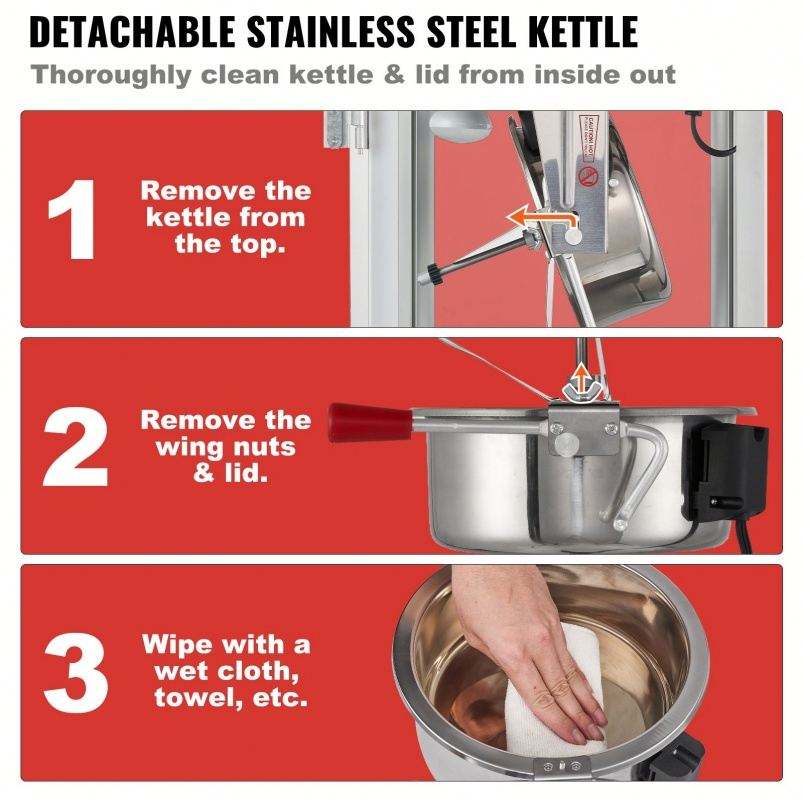 เครื่องทำป๊อปคอร์นสแตนเลส850W 8ออนซ์304เชิงพาณิชย์