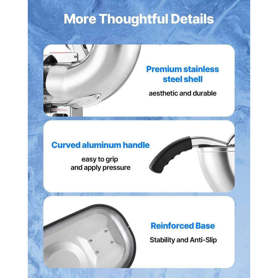 Commercial 440LBS/H Electric Silver Shaved Ice Maker 440 Lbs/hour Commercial Grade Commercial Ice Crusher Commercial Shaved Ice