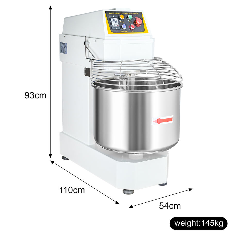 เครื่องผสมแป้งแบบเกลียวขนาด 68 ลิตร พร้อมตัวตั้งเวลา ปรับความเร็วได้ทั้งเร็วและช้า ระบบไฟฟ้า พร้อมปุ่มย้อนกลับและปุ่มหยุดฉุกเฉิน