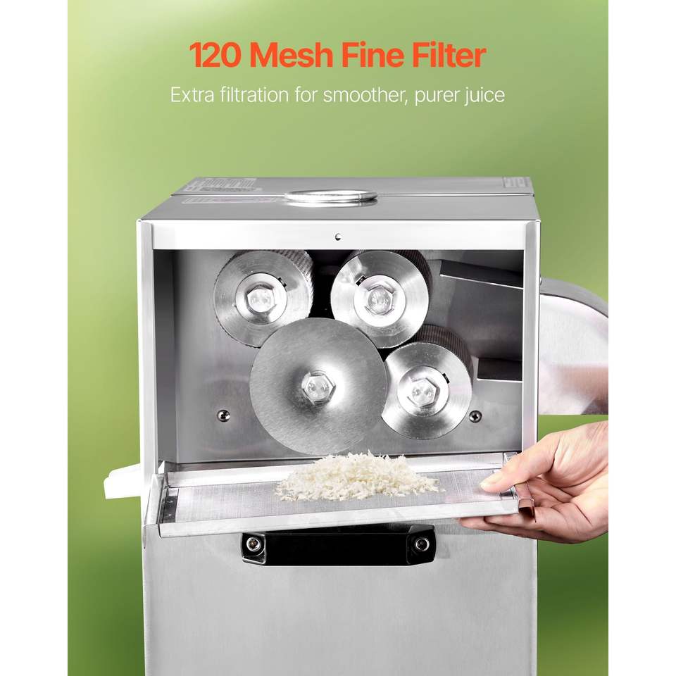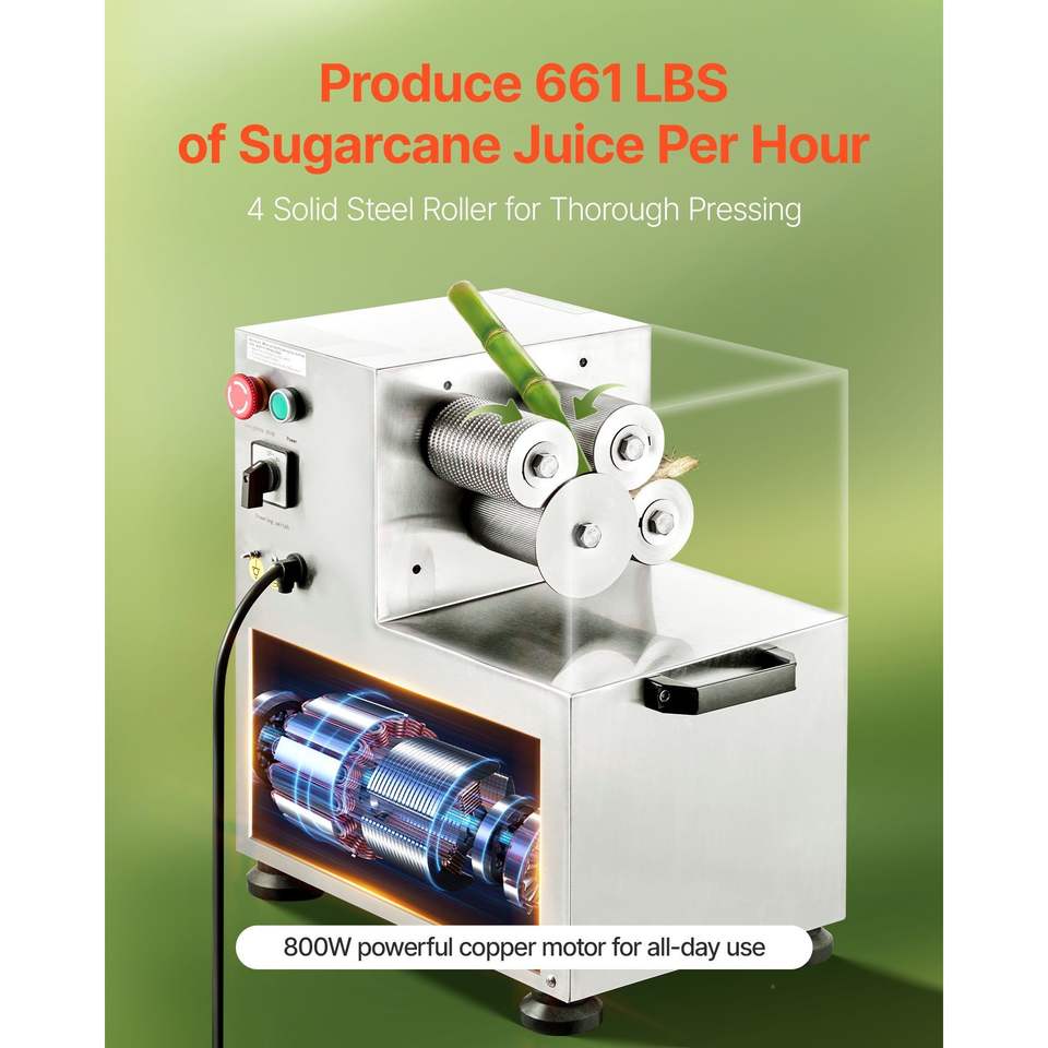 เครื่องคั้นน้ำอ้อยไฟฟ้าเชิงพาณิชย์ 800 วัตต์ กำลังการผลิตสูง 661 ปอนด์/ชม. พร้อมลูกกลิ้งสแตนเลส 4 ลูกคุณภาพสูง