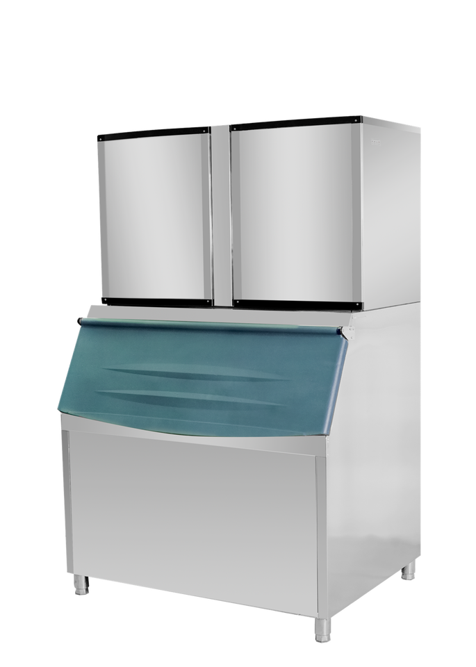 เครื่องทำน้ำแข็งอัตโนมัติเชิงพาณิชย์ พร้อมเครื่องจ่ายน้ำ ระบบระบายความร้อนด้วยอากาศ มอเตอร์และปั๊ม คอมเพรสเซอร์ฮิตาชิ ความจุ 15 กก.
