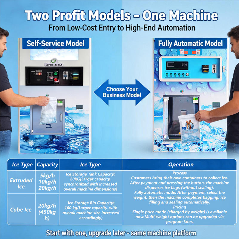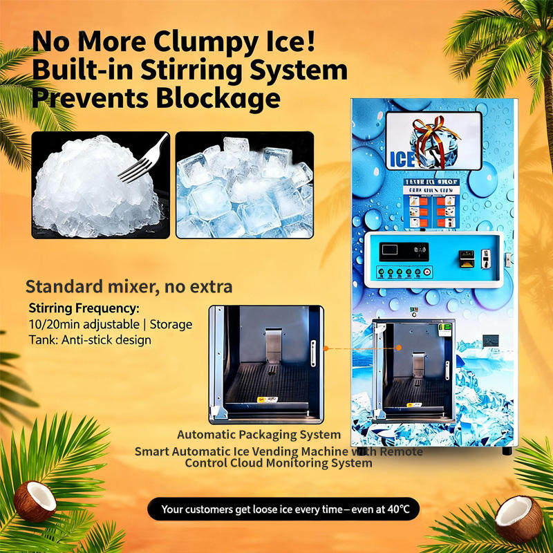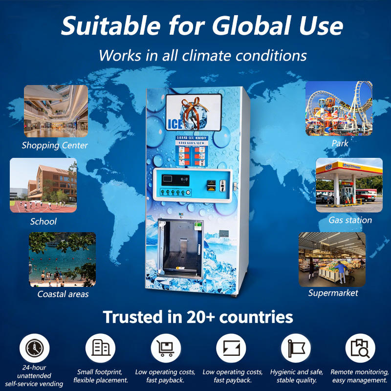 เครื่องทำน้ำแข็งอัตโนมัติเชิงพาณิชย์สำหรับใช้งานกลางแจ้ง บริการตนเอง เหมาะสำหรับปั๊มน้ำมันและร้านสะดวกซื้อ