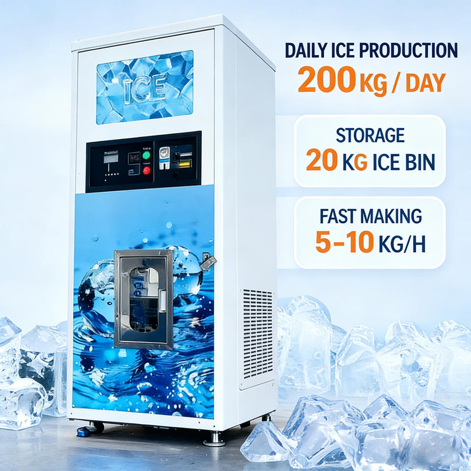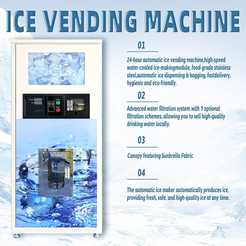 เครื่องจำหน่ายน้ำแข็งอัตโนมัติเชิงพาณิชย์สำหรับติดตั้งภายนอกอาคาร เหมาะสำหรับปั๊มน้ำมันและตลาด