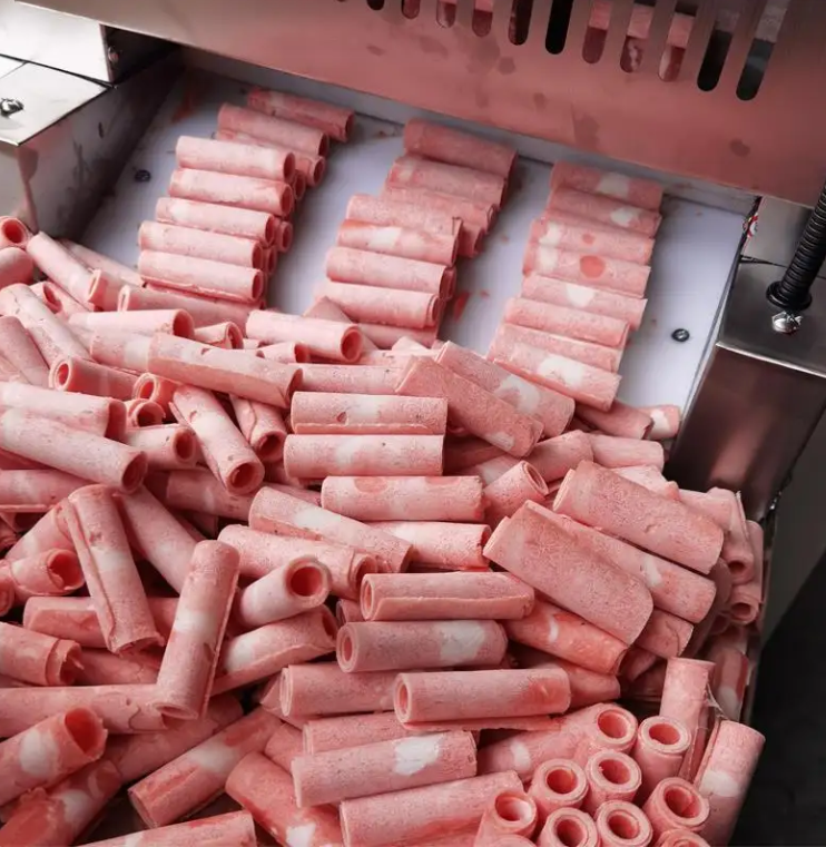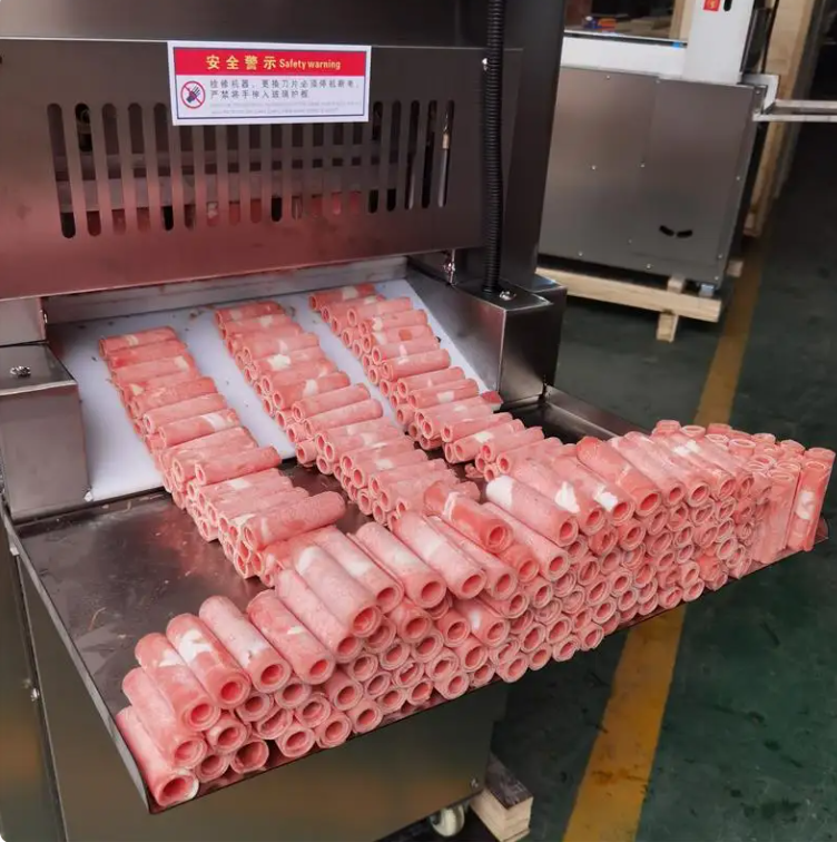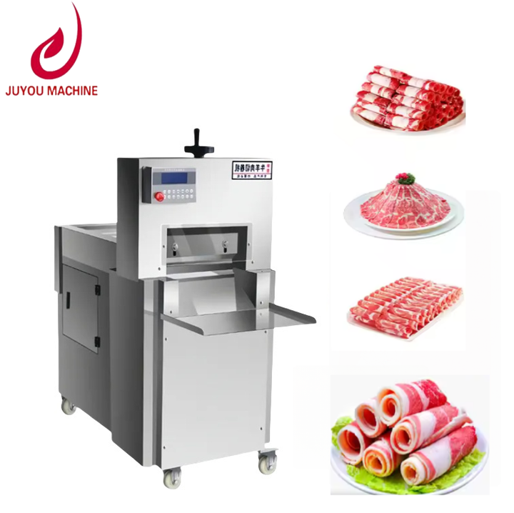 เครื่องหั่นเนื้อสแตนเลสอัตโนมัติเชิงพาณิชย์สภาพใหม่สำหรับการตัดเนื้อวัวและเนื้อแกะแช่แข็ง