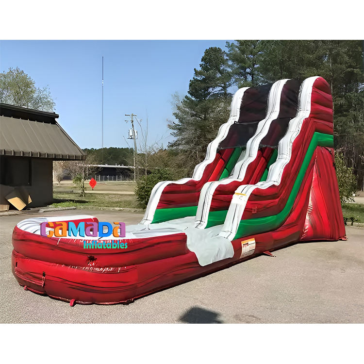สไลเดอร์เป่าลม18Ft สำหรับสวนหลังบ้านเชิงพาณิชย์รูปต้นปาล์มกระโดดกระเด้งหินอ่อนมะพร้าวเขตร้อนสไลเดอร์สูบลมพร้อมสระว่ายน้ำ