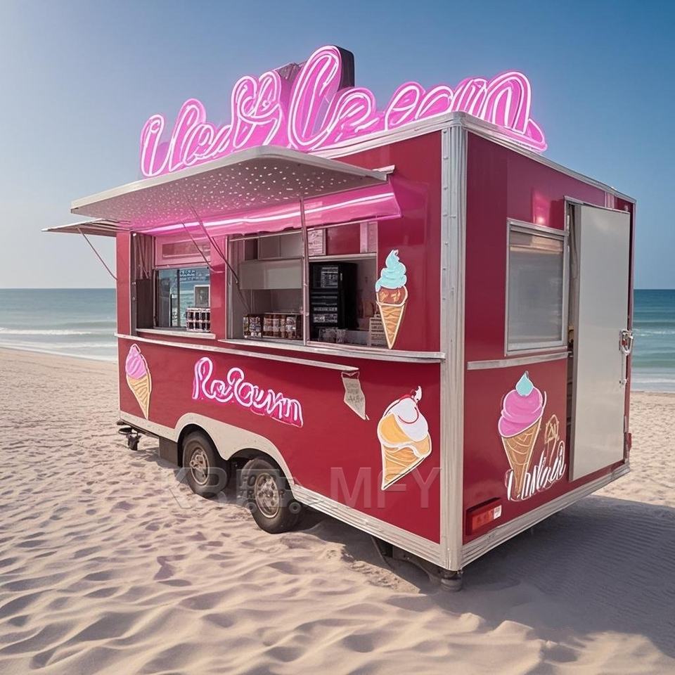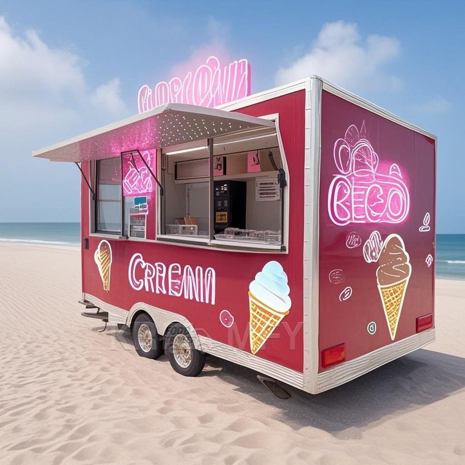 รถขายอาหารเคลื่อนที่แบบเร็วพร้อมครัวสำหรับขายแฮมเบอร์เกอร์และอาหารอื่นๆ