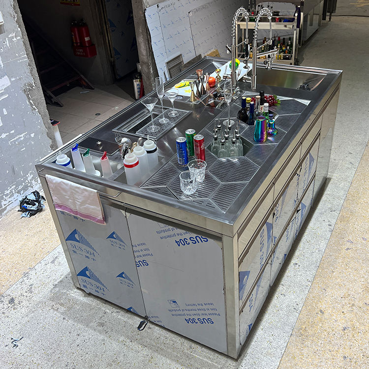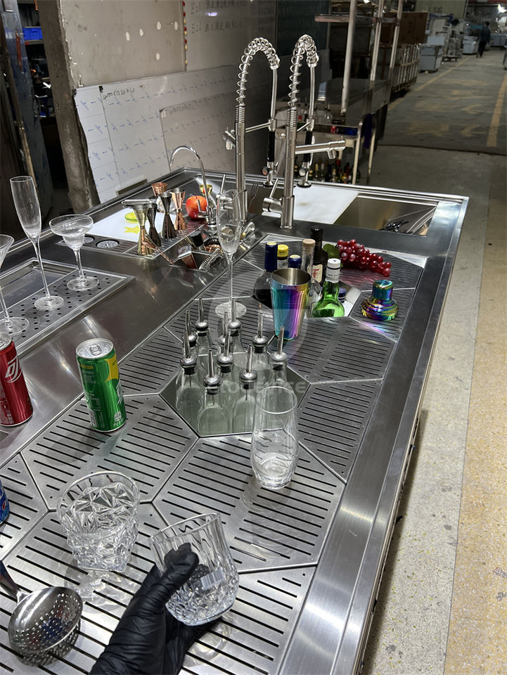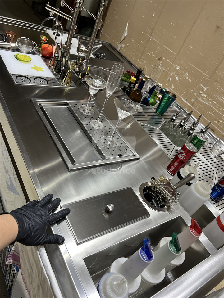 สถานีค็อกเทลเชิงพาณิชย์แบบกำหนดเองได้ บาร์ค็อกเทลสแตนเลสพร้อมเครื่องล้างแก้ว สำหรับร้านอาหารและโรงแรม