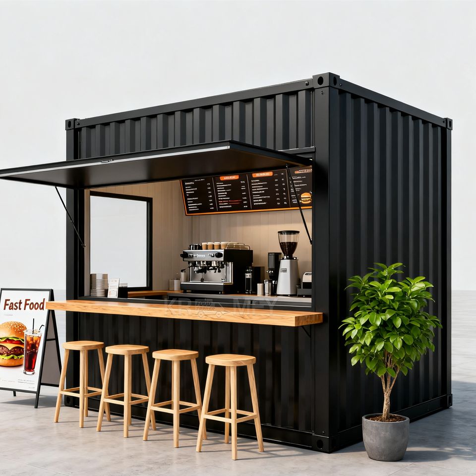 ร้านกาแฟเคลื่อนที่แบบคอนเทนเนอร์ ร้านอาหาร ร้านค้า คีออสก์ ทันสมัย แข็งแรง ทนทาน พื้นที่กว้างขวาง