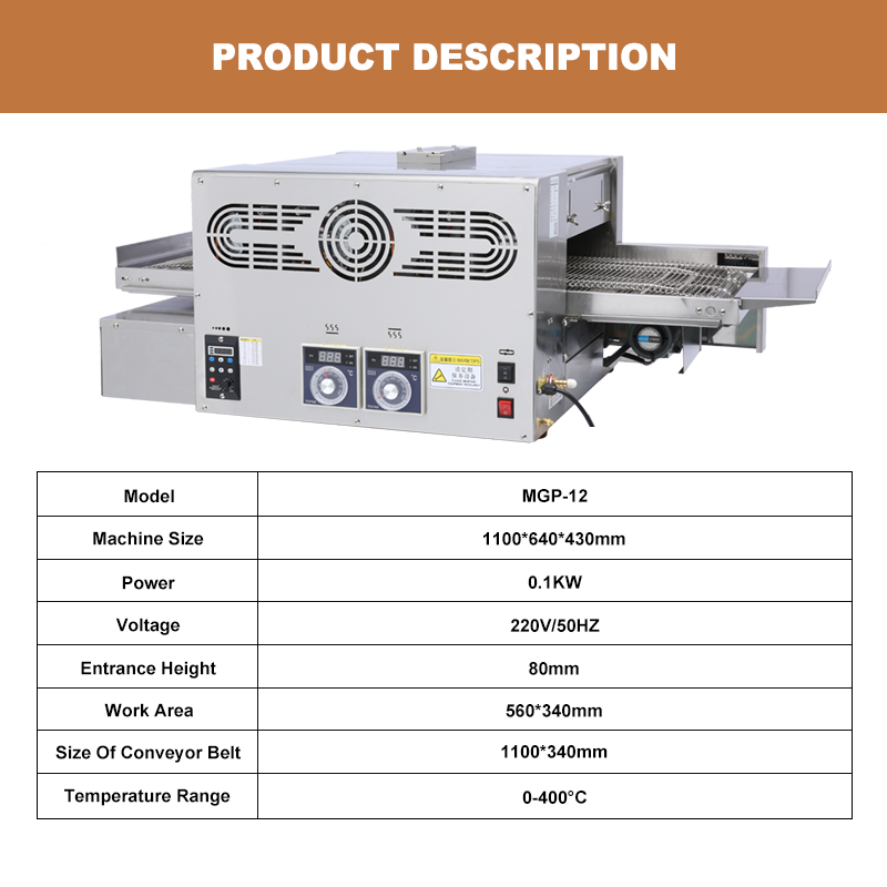 ชื่อผลิตภัณฑ์:เตาอบพิซซ่าสายพานแก๊ส12
