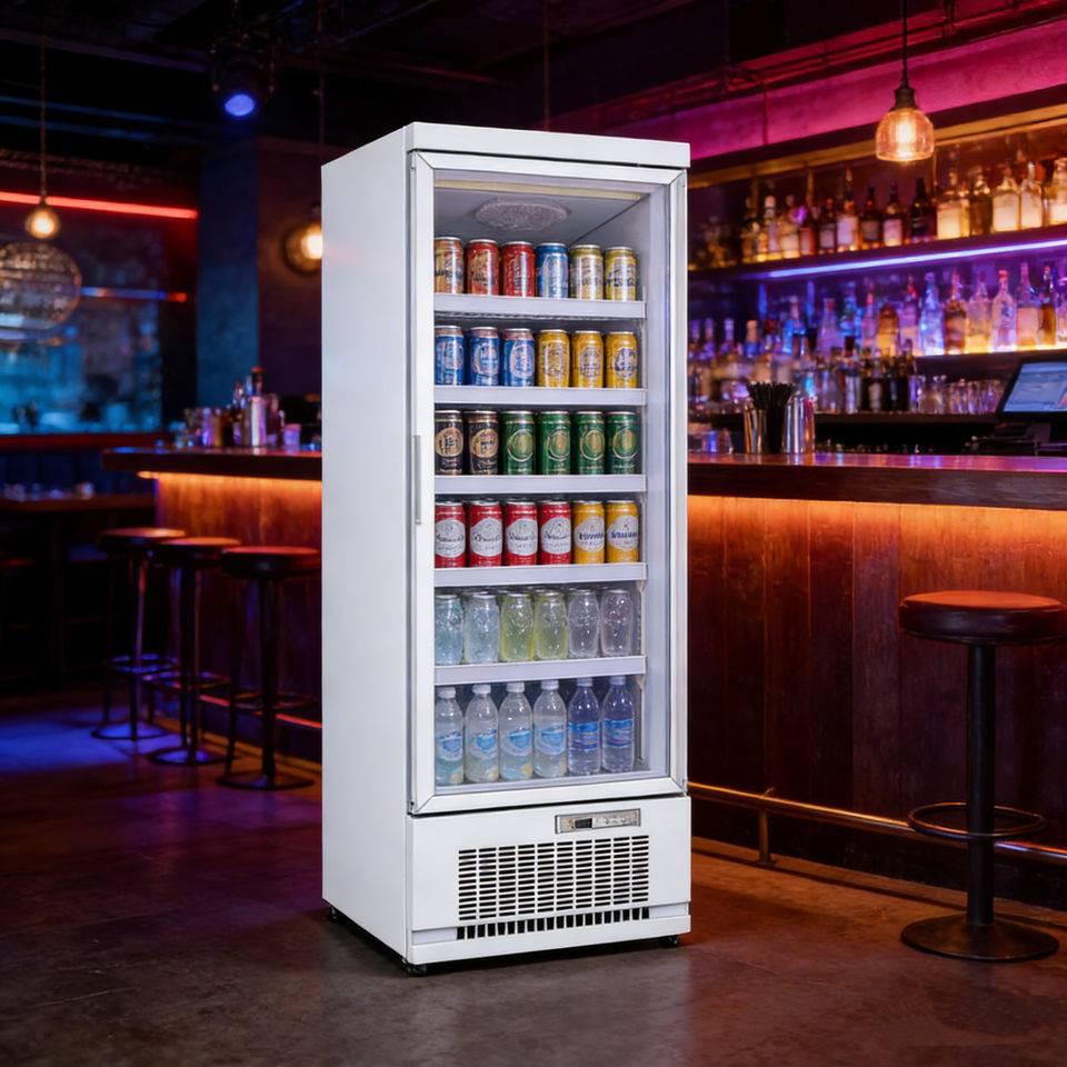 ตู้แช่เครื่องดื่มแบบตั้งตรง ประตูกระจก สำหรับแสดงสินค้า เช่น เป๊ปซี่ เครื่องดื่มชูกำลัง และเครื่องดื่มเย็นอื่นๆ