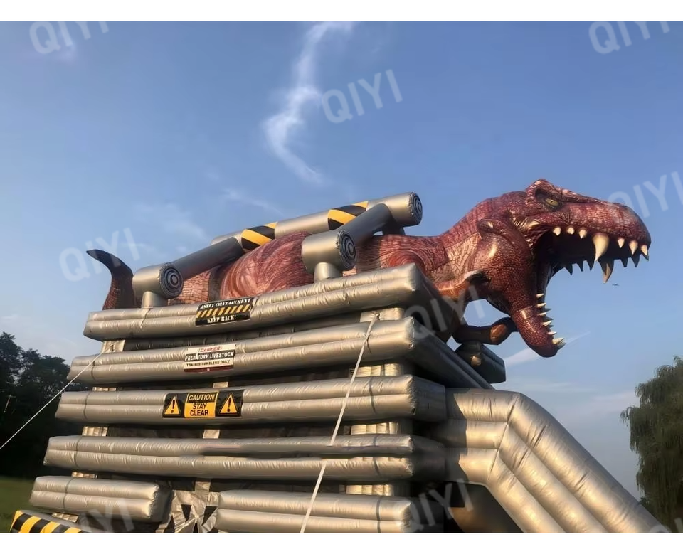 สไลเดอร์เป่าลมธีมไดโนเสาร์เชิงพาณิชย์พร้อมสิ่งกีดขวางสนามเด็กเล่นกลางแจ้งสำหรับเด็ก