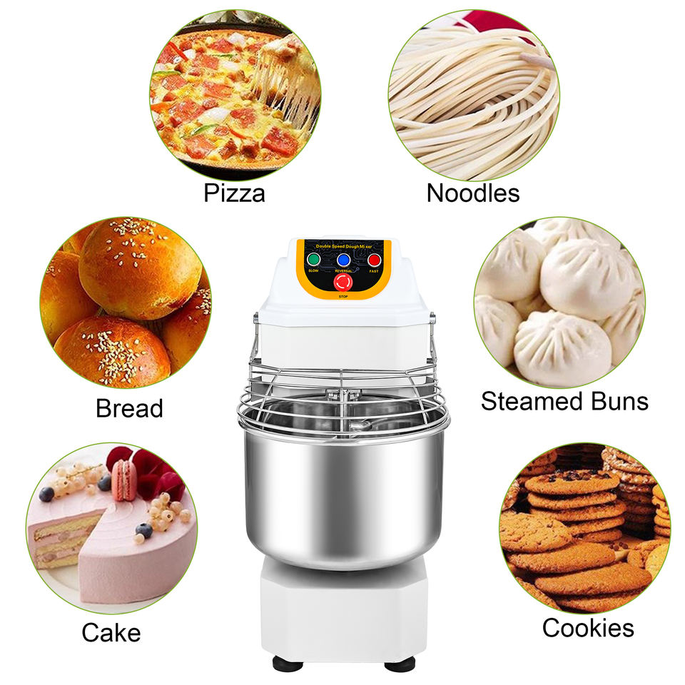 เครื่องผสมแป้งแบบเกลียวสองความเร็วเชิงพาณิชย์, โถสแตนเลส, พร้อมตัวป้องกันความปลอดภัย, สำหรับเบเกอรี่ พิซซ่า และขนมปัง