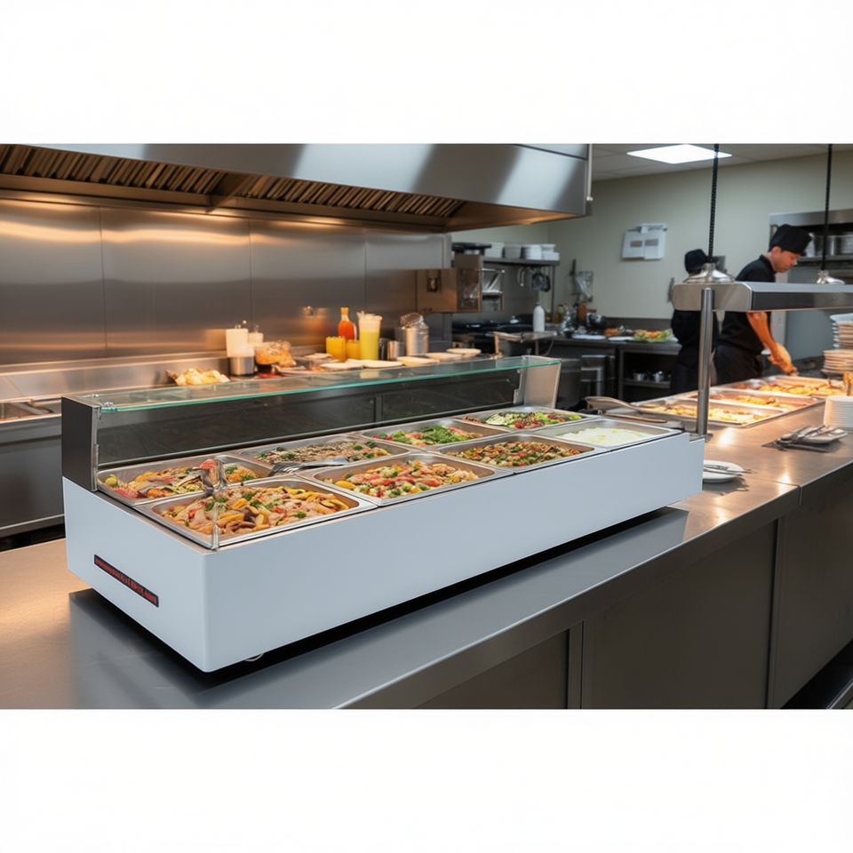 เครื่องอุ่นอาหารไฟฟ้าแบบตั้งโต๊ะเชิงพาณิชย์ ขนาด 8x8 ควอร์ต พร้อมกระจกกั้น สำหรับเครื่องจักรแปรรูปอาหาร