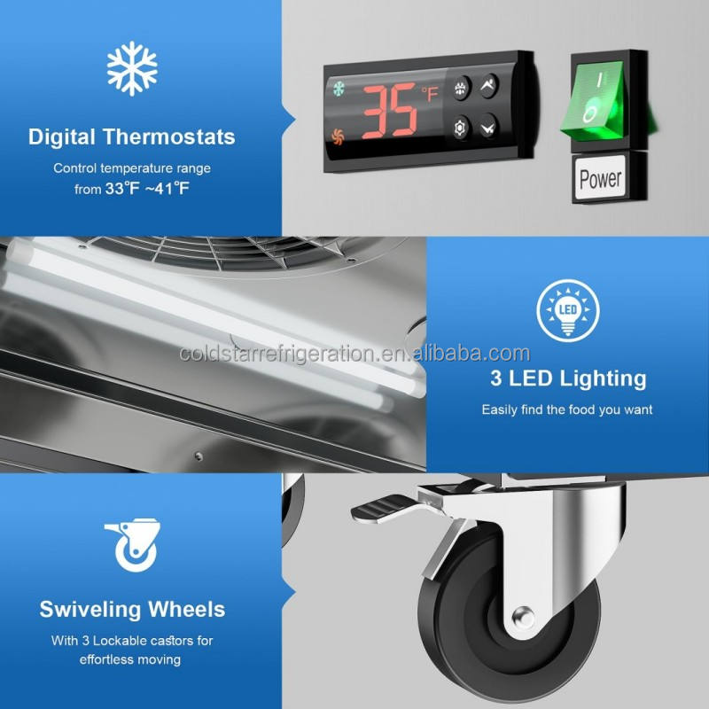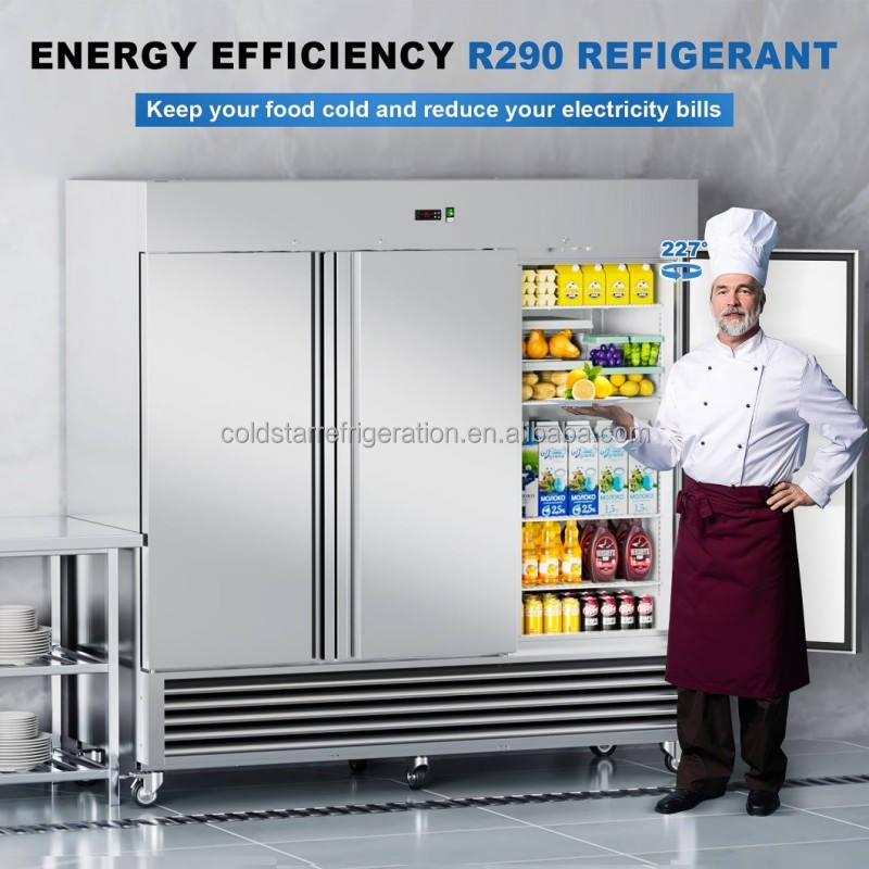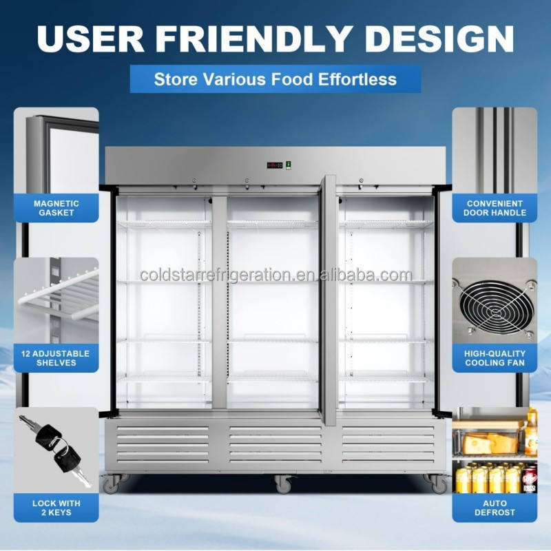 ตู้แช่แข็งสามประตูไฟฟ้าเชิงพาณิชย์ระบายความร้อนด้วยอากาศในแนวตั้งสองอุณหภูมิควบคุมอุณหภูมิดิจิตอลละลายน้ำแข็งอัตโนมัติ