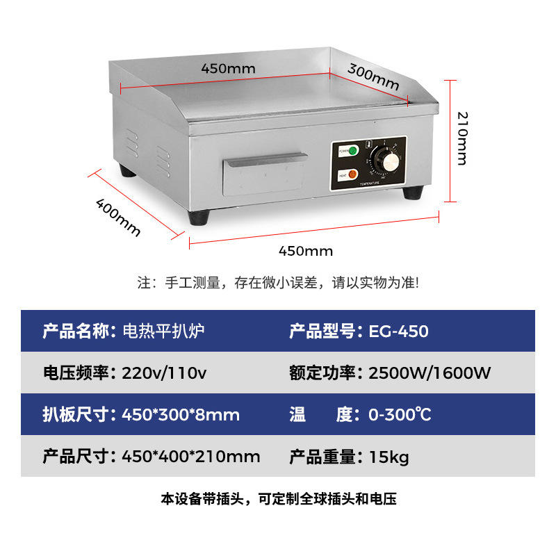 เตาไฟฟ้าเชิงพาณิชย์ขนาด 24 x 16 นิ้ว แบบไม่ติดกระทะเคลือบ PTFE พร้อมระบบควบคุมอุณหภูมิ สำหรับทำเทปปันยากิ สเต็ก เต้าหู้