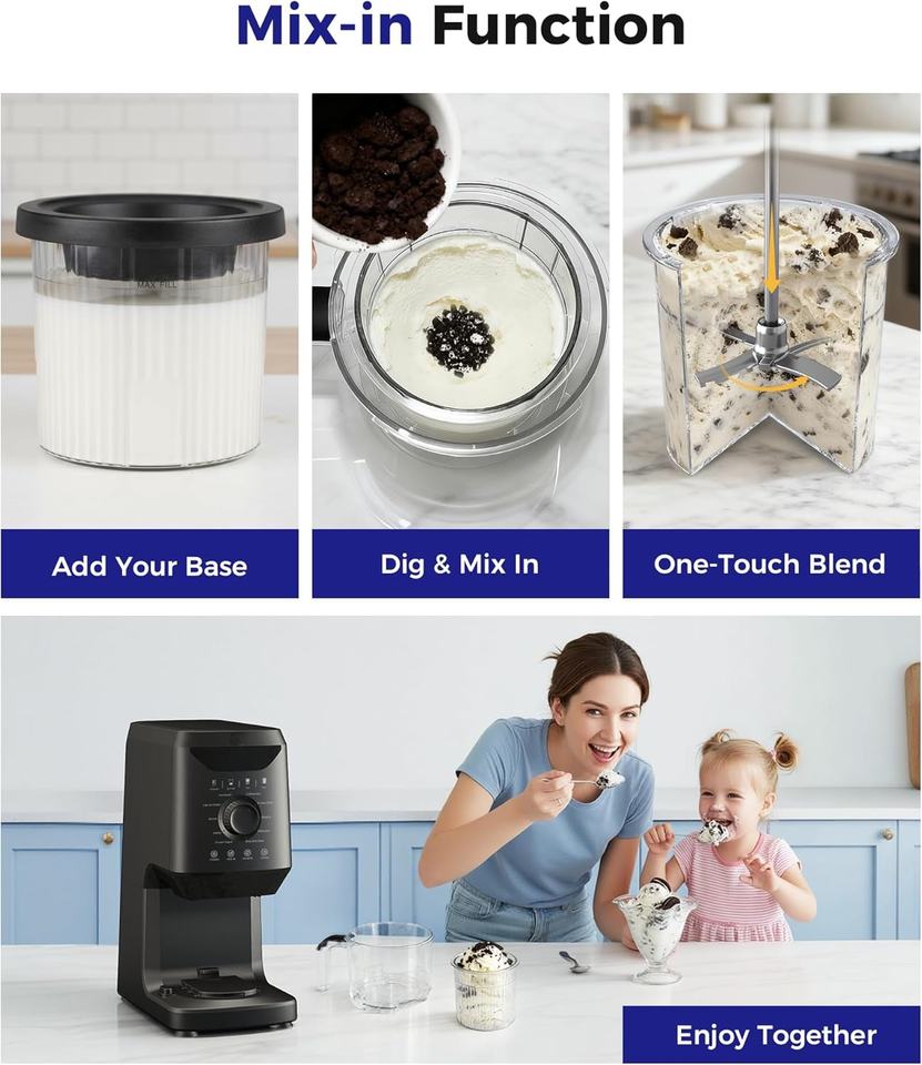 เครื่องทำไอศกรีมไฟฟ้าเชิงพาณิชย์ มอเตอร์ 800 วัตต์ ทำความสะอาดอัตโนมัติ ได้รับการรับรองมาตรฐาน CE 10 โหมด ใช้งานเงียบ ความจุ 0.5 ลิตร สำหรับใช้ในบ้านและนอกบ้าน