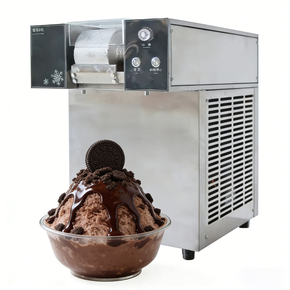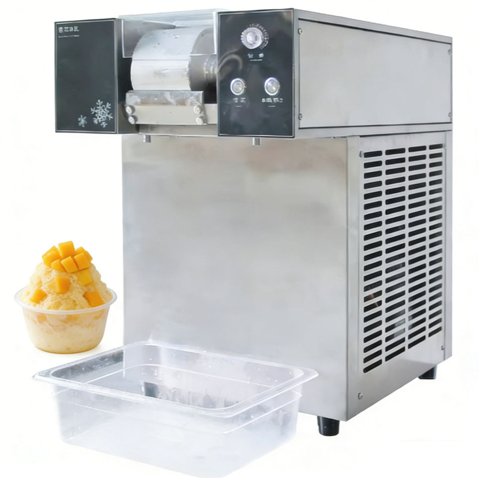เครื่องทำน้ำแข็งไสไฟฟ้าเชิงพาณิชย์ สำหรับโรงแรม เครื่องทำน้ำแข็งเกล็ดหิมะแบบแมนนวล พกพาสะดวก ใช้ในบ้านและนอกบ้าน ทำจากสแตนเลส กำลังไฟ 1000 วัตต์ ผลิตน้ำแข็งได้ 5 กก./นาที