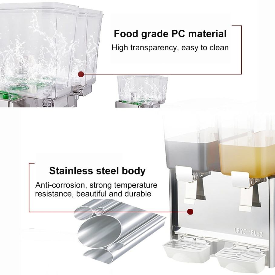 เครื่องจ่ายเครื่องดื่มสแตนเลสเชิงพาณิชย์ ยี่ห้อมารุพิน สำหรับเครื่องดื่มเย็น น้ำผลไม้ เหมาะสำหรับโรงแรม ร้านอาหาร โรงเรียน
