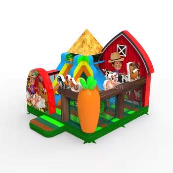 ปราสาทเป่าลมสำหรับงานปาร์ตี้กลางแจ้งบ้านเด้งเป่าลมธีมฟาร์มเชิงพาณิชย์พร้อมสัตว์โรงนาสำหรับเด็ก