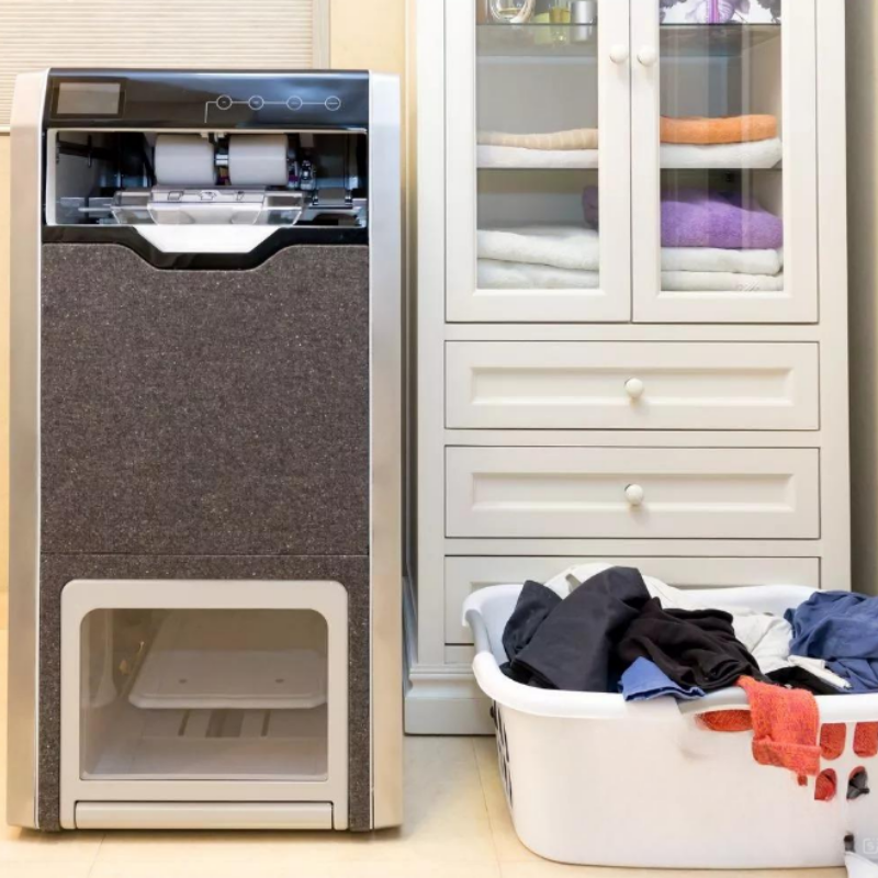 เครื่องซักผ้าพับได้เชิงพาณิชย์ – เครื่องซักผ้าผ้าสีเทาพร้อมดีไซน์พับเก็บได้