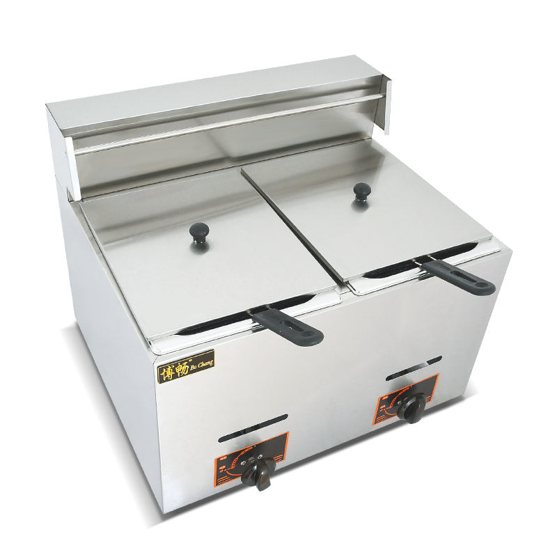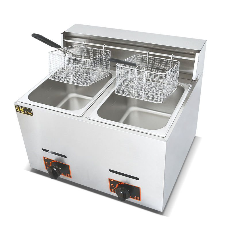 เครื่องทอดแบบใช้แก๊ส ถังคู่ สแตนเลส สำหรับทอดมันฝรั่งทอด