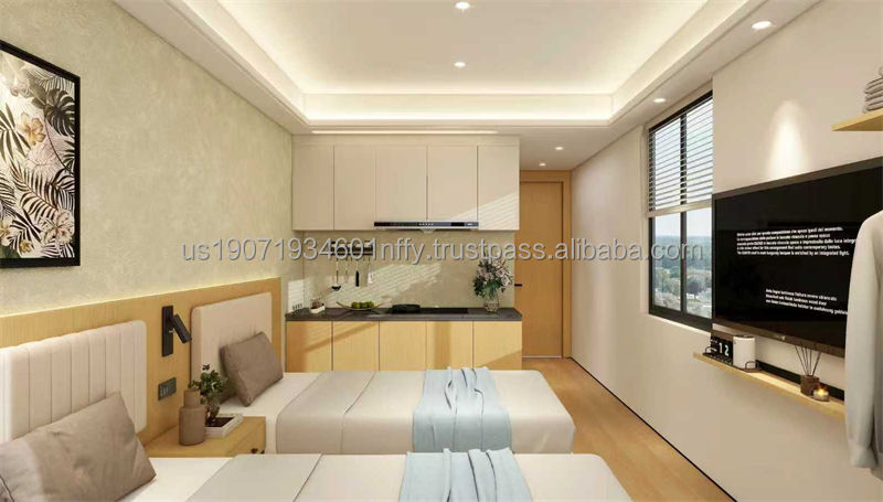 เฟอร์นิเจอร์เชิงพาณิชย์ทันสมัย ชุดห้องนอนคู่สำหรับอพาร์ทเมนต์โรงแรมระดับ 3 ดาว พร้อมชุดห้องครัวแบบครบชุดในตัว