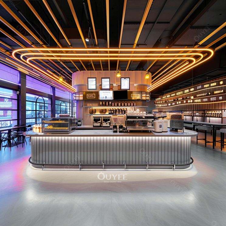 เฟอร์นิเจอร์เชิงพาณิชย์คาเฟ่ตู้ร้านอาหารร้านกาแฟเคาน์เตอร์แบบแยกส่วนคอฟฟี่ดีไซน์โต๊ะกาแฟ