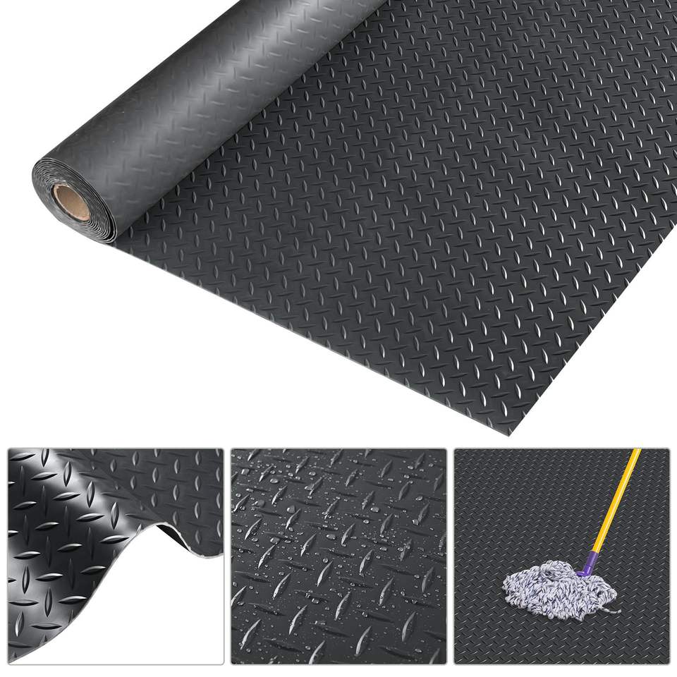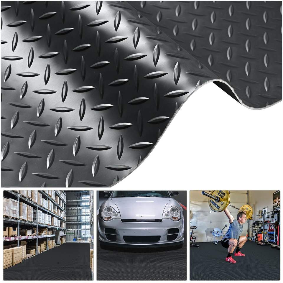 แผ่นปูพื้นโรงรถเชิงพาณิชย์ ขนาด 6.5*19.5 ฟุต สีดำ ทำจากพลาสติก ทนทานและทำความสะอาดง่าย