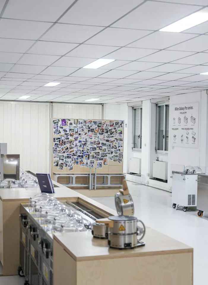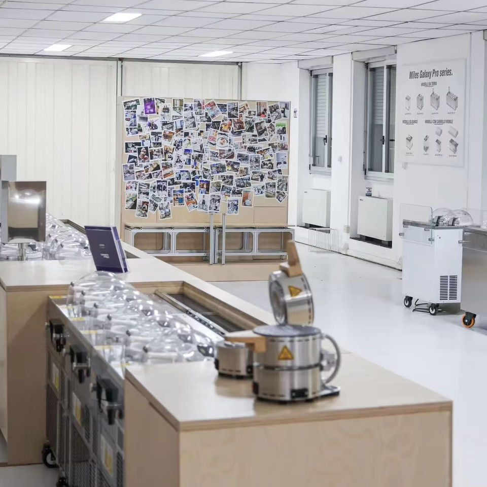 เครื่องทำไอศกรีมเจลาโตเชิงพาณิชย์ V2ชุดสองหม้อกาแลคซีโปรหลายไมล์ใบมีดโกนแบบปรับได้เองไม่มีสารตกค้างไม่มีน้ำแข็งที่สะสม