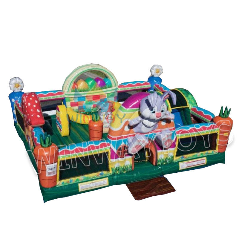 แบบเป่าลมธีมกระต่ายอีสเตอร์เกรดพาณิชย์สนุกสำหรับเด็กในเมืองเด้งปราสาทสนามเด็กเล่นคอมโบสำหรับงานเลี้ยงเช่า