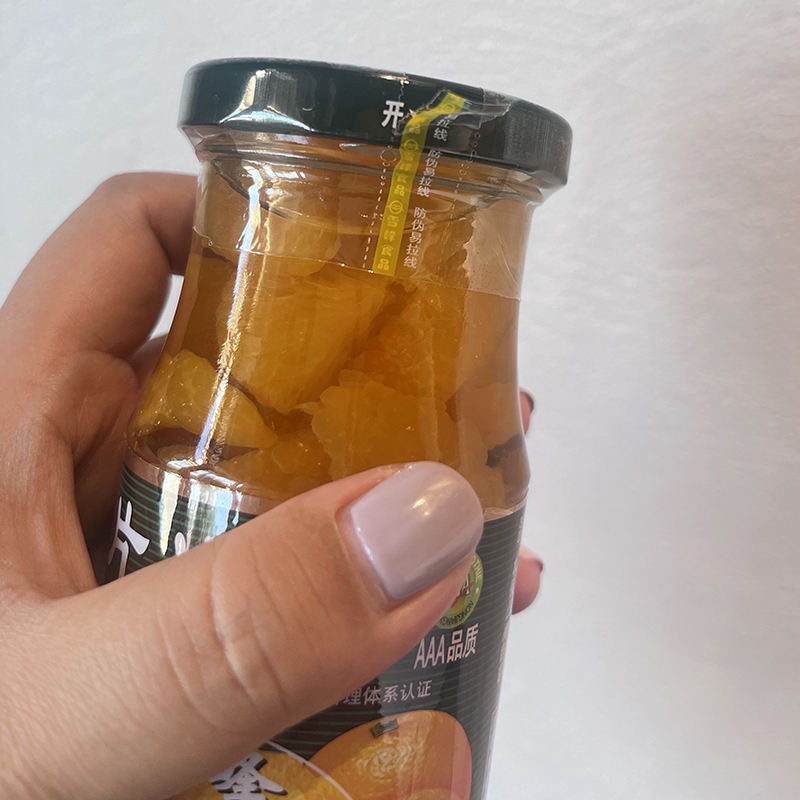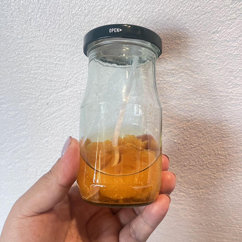 เหยือกแก้วใส่ผลไม้เกรดเชิงพาณิชย์พร้อมฝาบิดแบบปลอดภัยฉลากแบบกำหนดเองพร้อมเสิร์ฟส้มแมนดารินสำหรับร้านอาหารโรงแรม