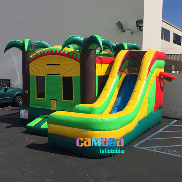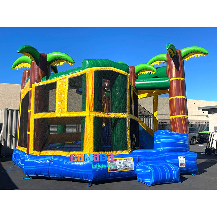 จัมเปอร์สวนหลังบ้านสำหรับเด็กแบบเป่าลมรูปต้นปาล์มแบบเขตร้อน